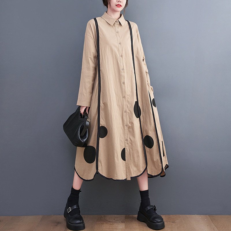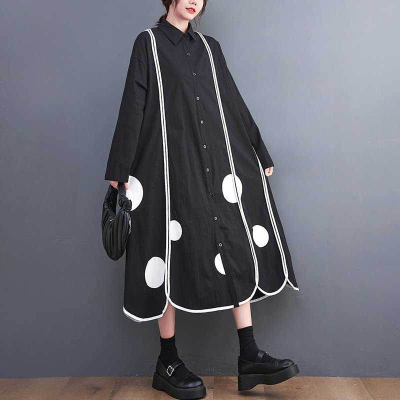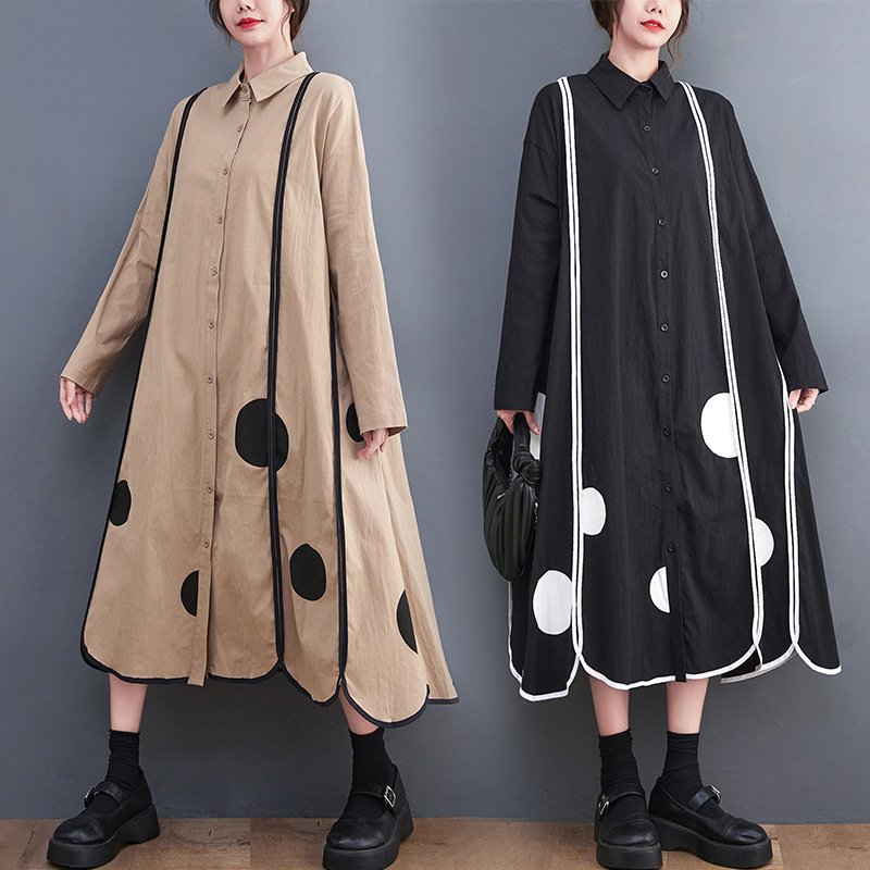 秋の韓国版新作ゆったりとした大きなサイズの花柄レースプリントミディアム丈の文学的なレトロワンピース